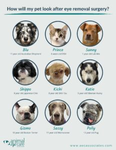 Most pets are more comfortable a few days after surgery than they were before, due to the relief from previous eye pain.